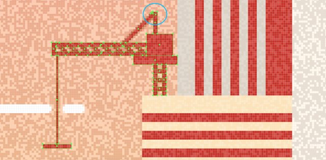 分别创建12x8px、6×8px、2×12px的矩形,颜色#BA473C,放在建筑物的顶部如图位置,打组。慢慢来,一旦你完成了,整个建筑物也要这样做。