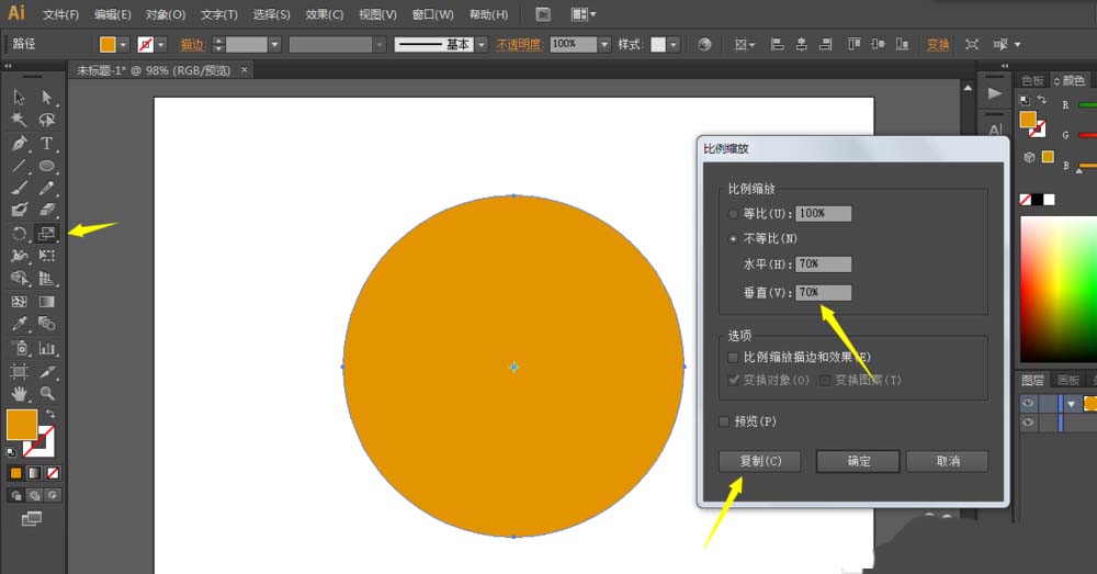 2、然后进行等比例缩放,并且复制一份。全选去掉顶部。