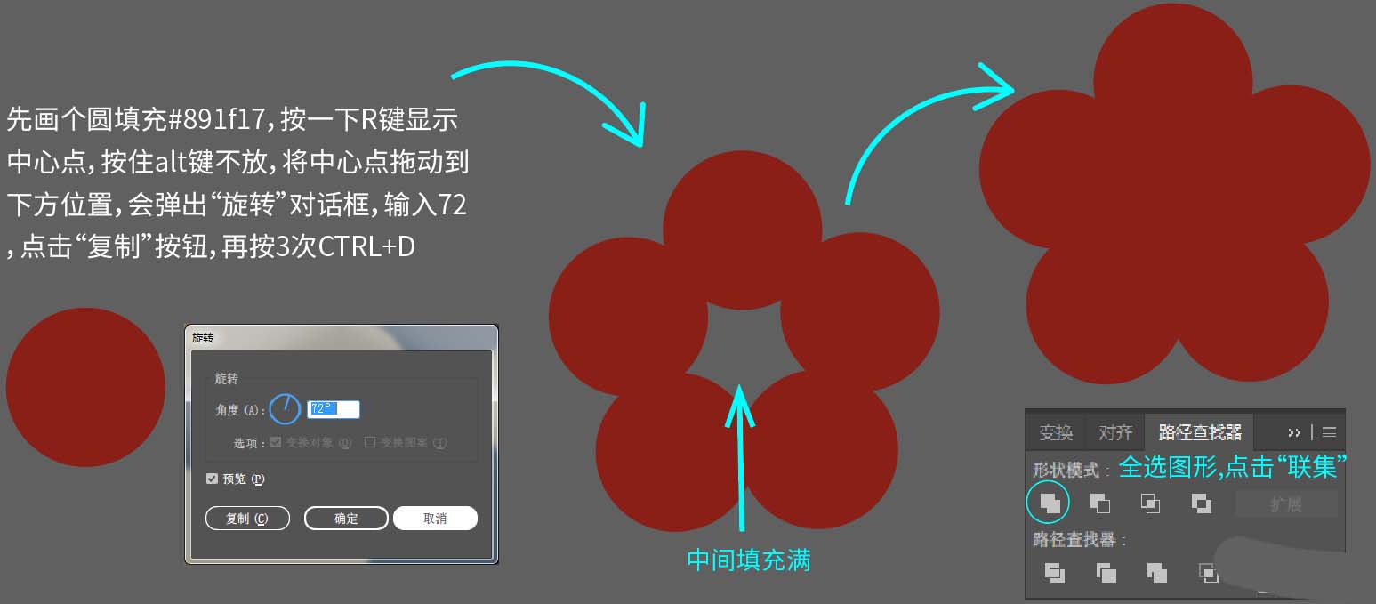(1)红色花花的步骤,此处我建立的是165*165px的圆形