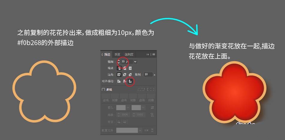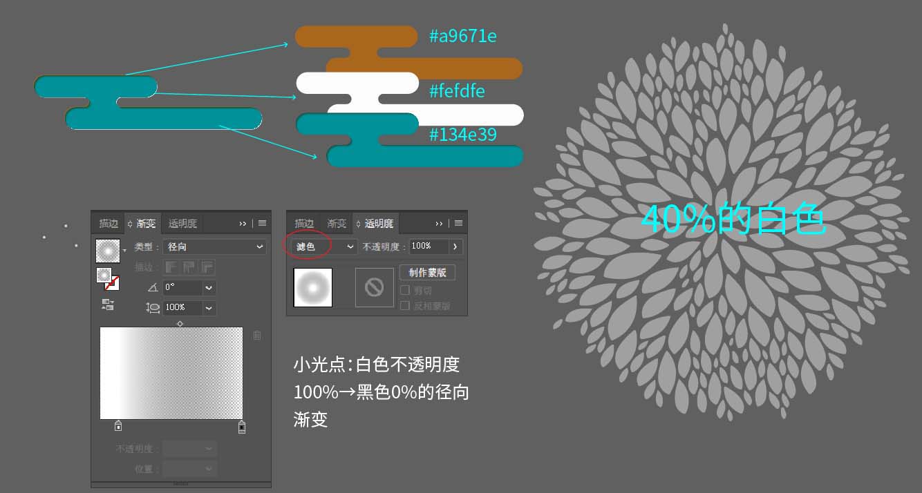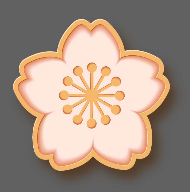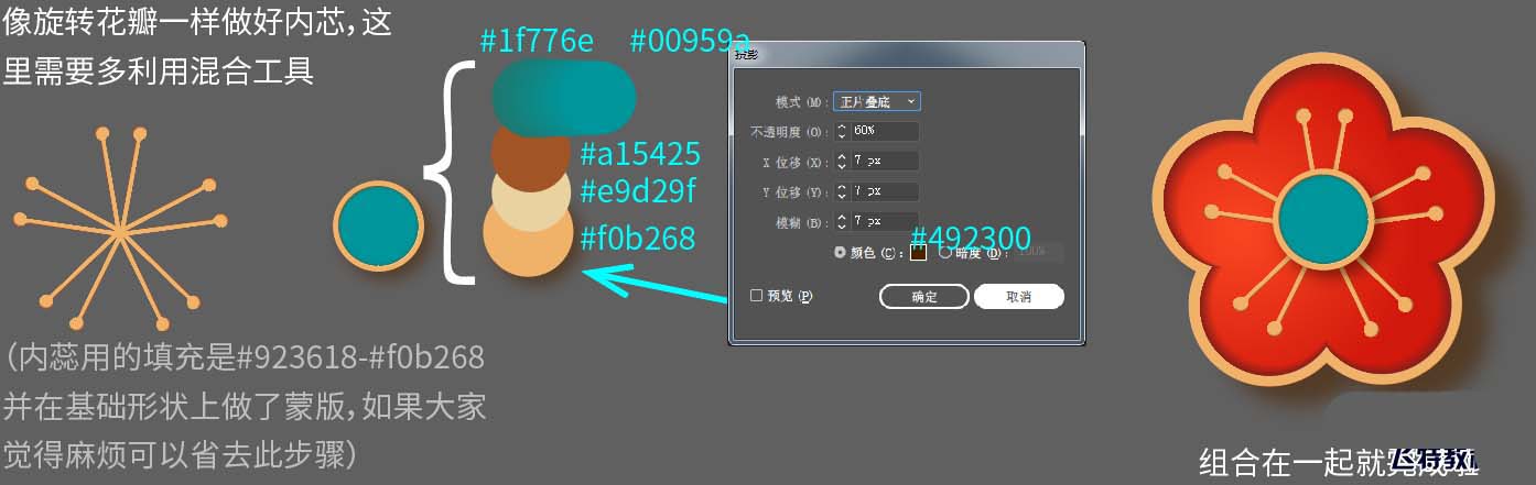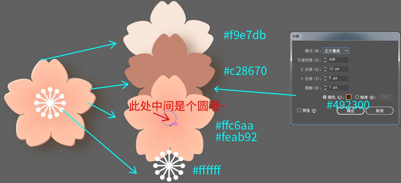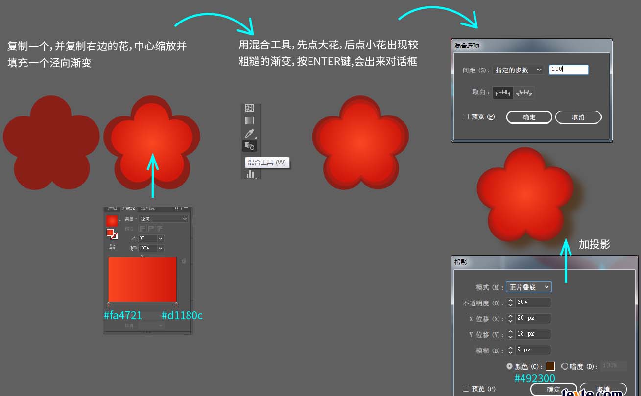 (3)小樱花(注意的就是,中间用混合工具,是从樱花形状到一个圆形的混合渐变)