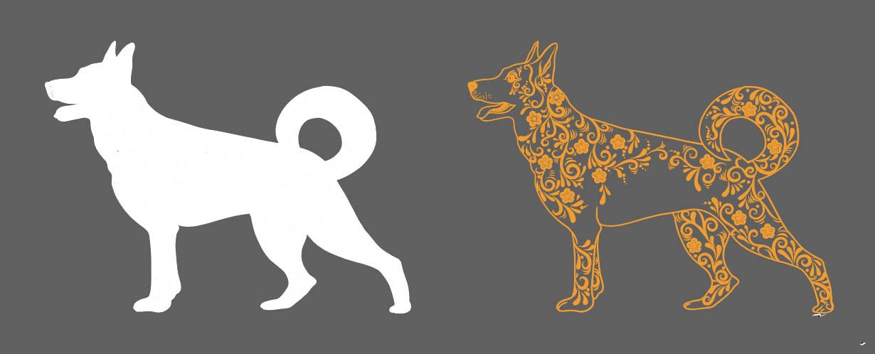 (6)狗狗图案,这个和(4)右侧那个繁琐的花都是在网上下的,个人比较懒,要是愿意画也可以自己画。