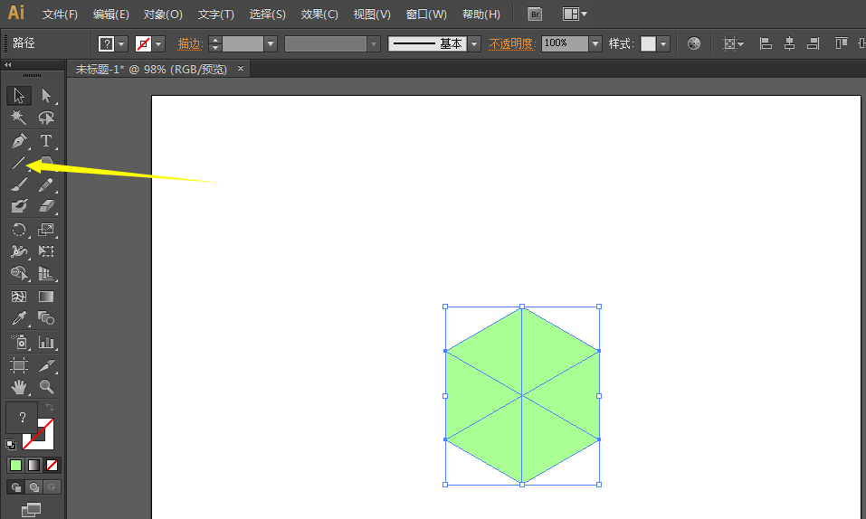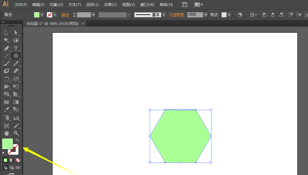 1、新建文档,使用多边形工具绘制六边形,然后旋转位置。