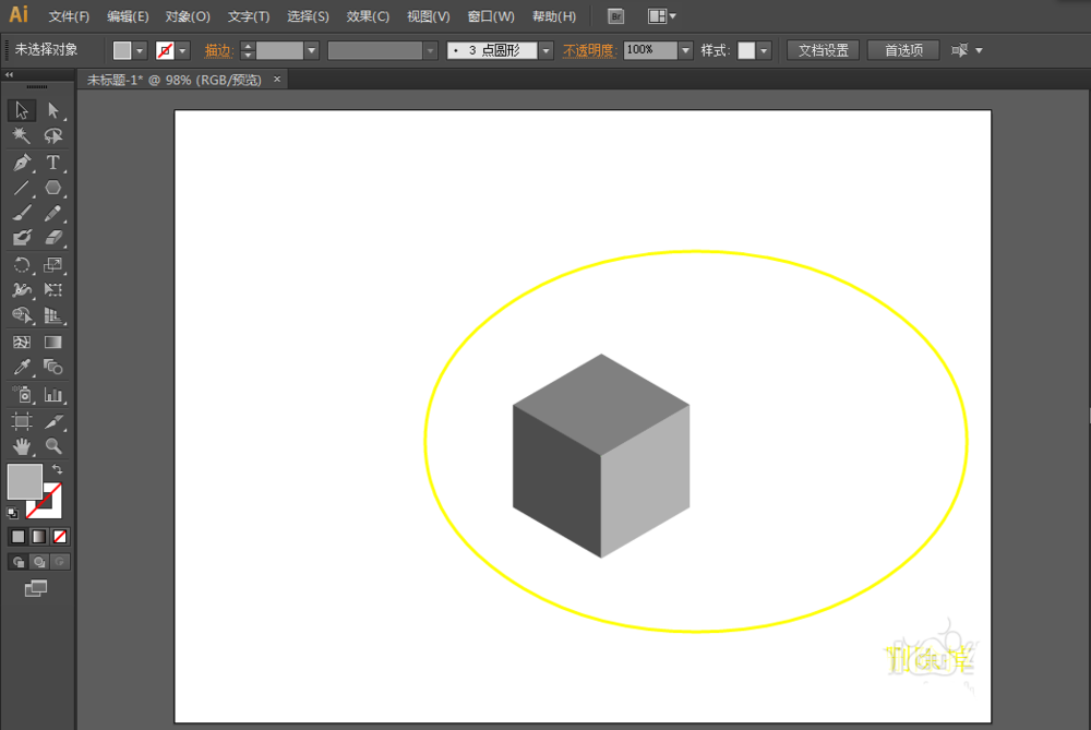 3、用形状生成工具制作正方体。三个面分别填充不同的颜色。
