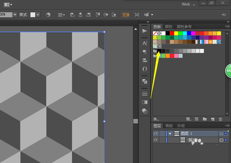 5、绘制一个背景矩形,在色板里点击刚刚制作的图案。