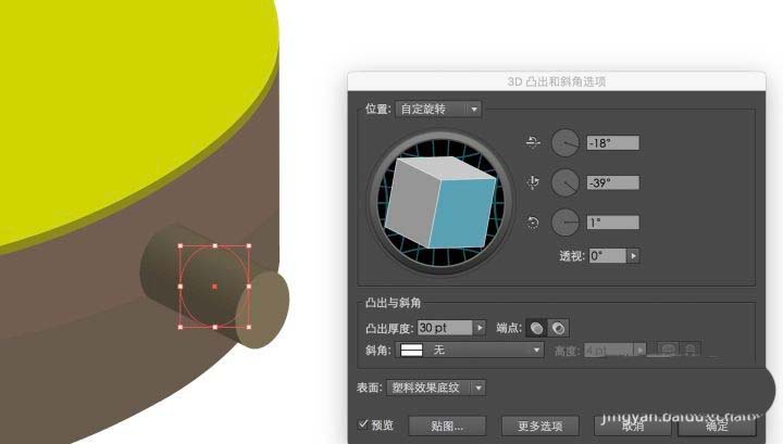 2、基本的3D 效果出来后 在调整窗口里 可以选择贴图,贴上你想要的颜色,当然前提是你必须将这个颜色保存为符号,这样贴图里才会有哦。 这样后期出现透视问题方便修改,若要保证你的透视不再更改,就对象-扩展外观喽,这样就形成一个三个面拼成的3d效果。