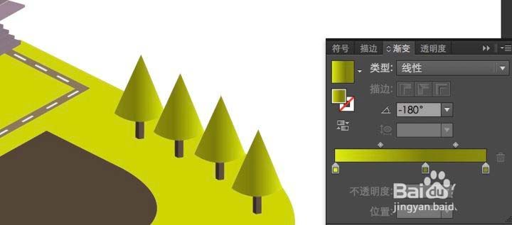 12、加一些小树,这不过是一个圆锥,填充渐变而已。