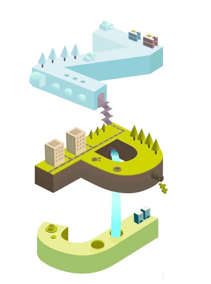 13、如同上面的楼梯一样,作为上下一个衔接,这里画一个瀑布 (瀑布很长哦) 填充一个90度的渐变。
