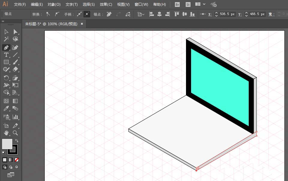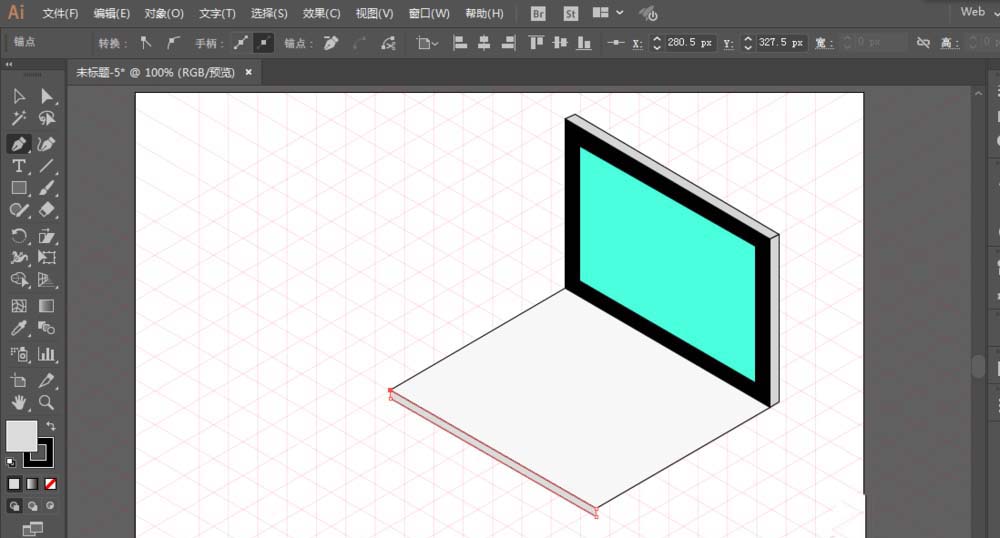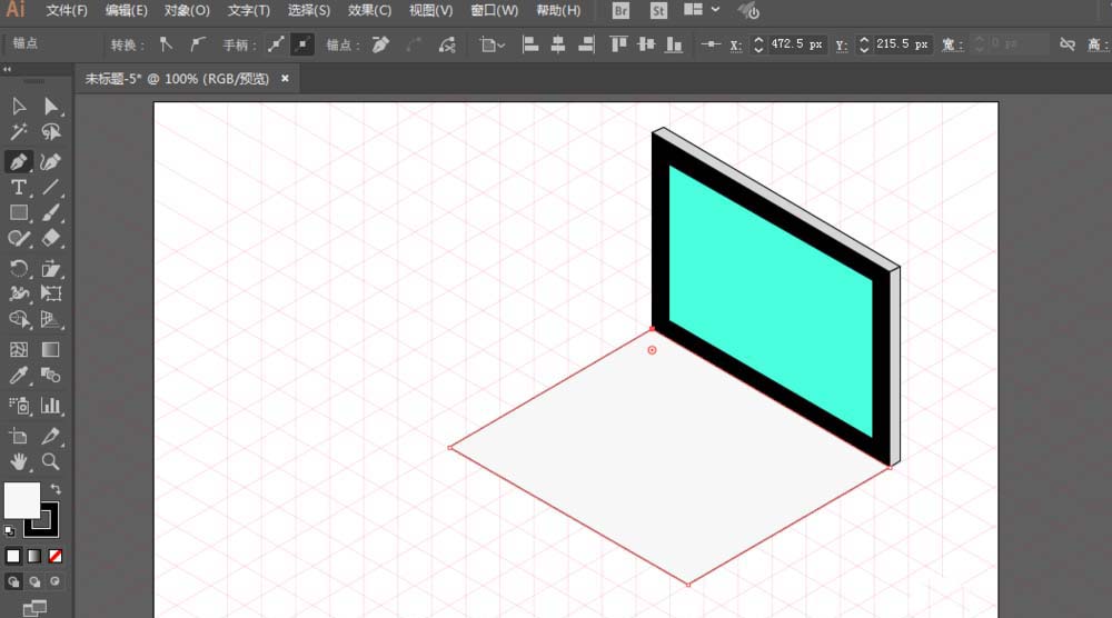 1、先准备好网格,用钢笔工具绘制显示器,并且填充颜色。