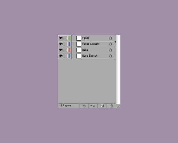 步骤1、先打开一个新文档(Command-N),并按照这个顺序添加图层:顶部是"Faces"图层,然后是"Faces Sketch"图层和"Base"图层(在这里我们将绘制我们的基本形状表情符号),最后是"基础素描"图层。