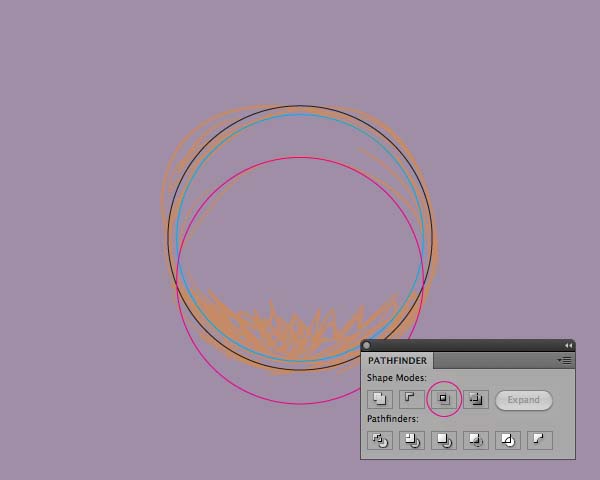 第7步、一旦你创造了舌头,给嘴更多的细节,你可以使用一个圆圈,并与我们的嘴巴底图一起裁剪。然后画一个小圆圈并在Pathfinder面板中应用Minus Front。现在我们的悲伤表情口完成了。