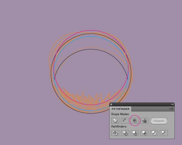 第6步、现在重复该过程 -再次复制该圆圈。将其像图中的洋红色圆圈一样拖动,再次复制图像中的蓝色圆圈,选择两者,然后再次在探路者面板中应用相交。