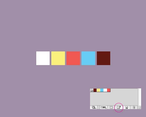 使用这些颜色,我们将生成所有渐变组合以获得更完整的调色板(我们将使用的所有渐变都是线性渐变)。要保存调色板颜色,请选择颜色并单击"色板"面板中的"新建颜色组"图标。