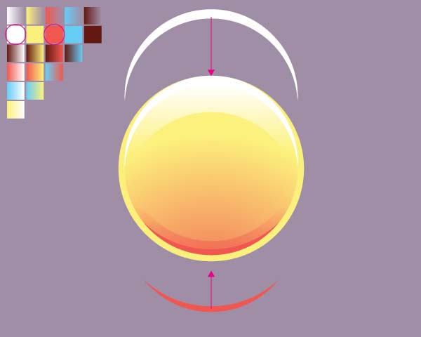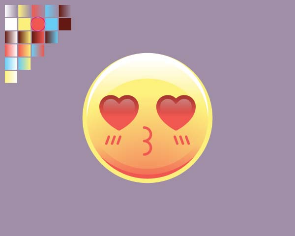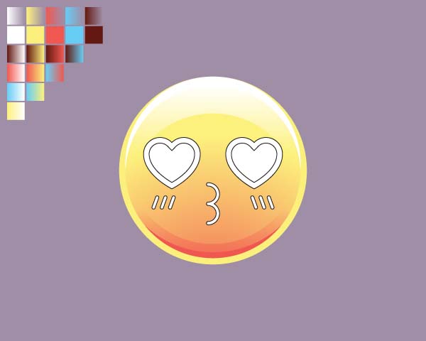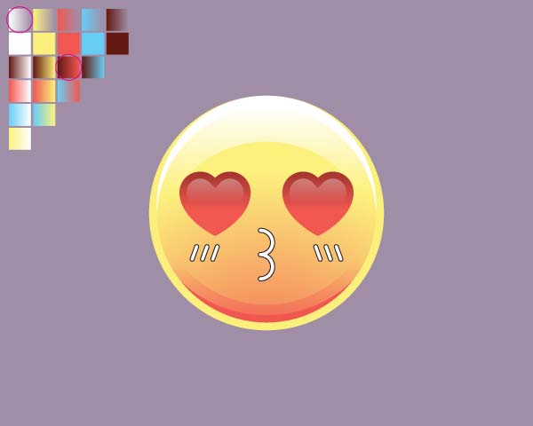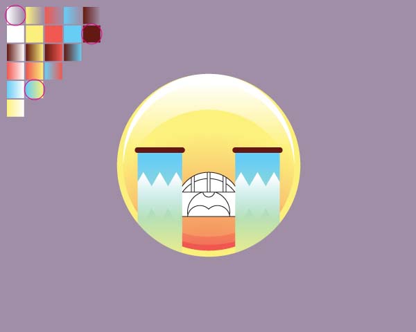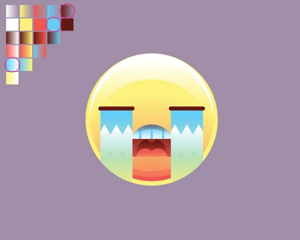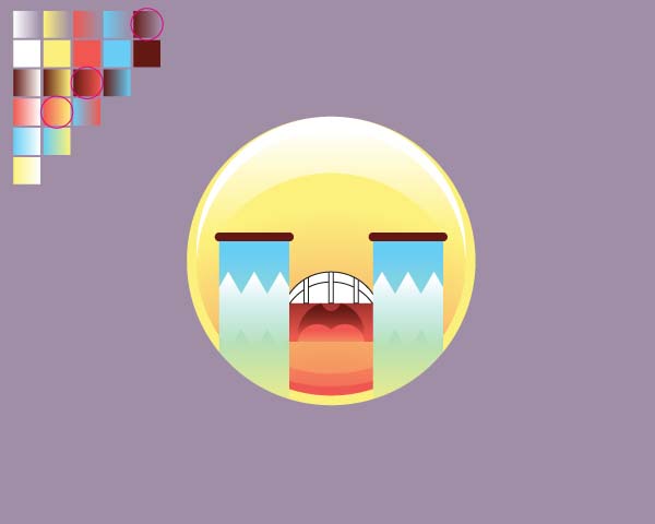 第9步、对于眼睛,我们使用我们的棕色纯色,为流泪的黄色和蓝色的渐变,并为闪耀的白色渐变。像在图像中一样应用它们。