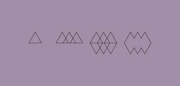 步骤4、要绘制光芒,请使用"多边形工具"绘制三角形。要做到这一点,绘制一个多边形,上下方向键可以添加或删除多边形的边。制作一个三角形,然后通过拖动并按Alt来复制它。然后Command-D以相同的距离复制副本,然后复制三个三角形并使用旋转工具(R)旋转它们,就像在图像中一样。最后,在探路者面板中应用Unite。