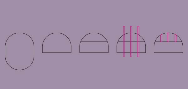 第5步、为了开始口,我们开始绘制一个圆角矩形。选择它,然后用橡皮擦工具(Shift-E)按下Alt键,我们进行拖动并擦除一半形状。然后我们复制我们的形状,再用橡皮擦工具再次拖动以获得牙齿。