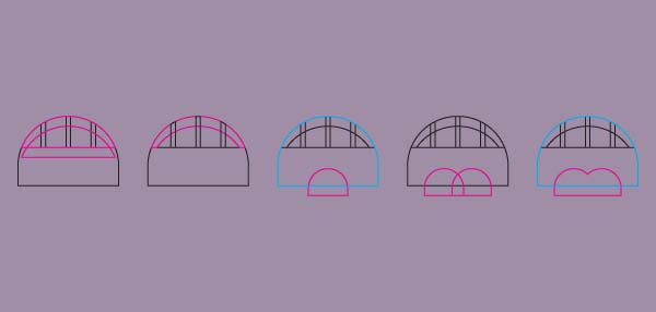 第6步、现在添加牙齿阴影的形状。使用您的基本形状并复制它并将其向下拖动一下,然后再次复制并获得阴影形状。要制作舌头,您可以使用嘴巴底座形状并缩放它,然后复制它并在探路者面板中应用Unite。最后复制你的嘴基形状和相交的形状。