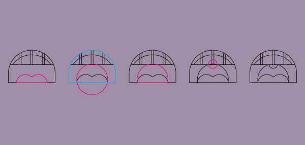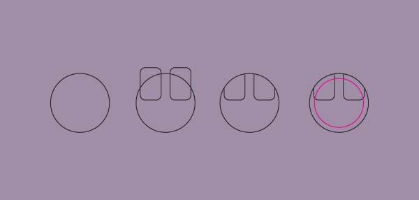 第3步、对于嘴巴,我们从一个简单的圆圈开始,为牙齿两个圆角矩形。在探路者中应用团结并在圆内裁剪它们,然后通过选择对象并应用偏移路径来生成更小的圆。