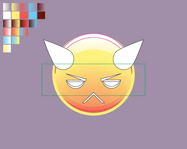添加一些细节,比如白色渐变的喇叭中的闪耀和红色渐变后面的阴影,记住将探路者应用于裁剪对象。我们生气的表情完成了。