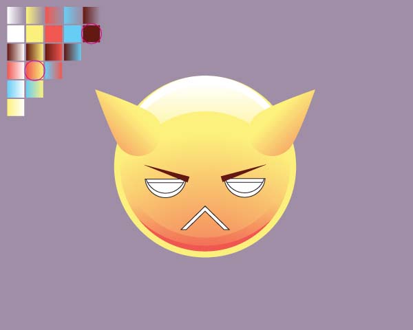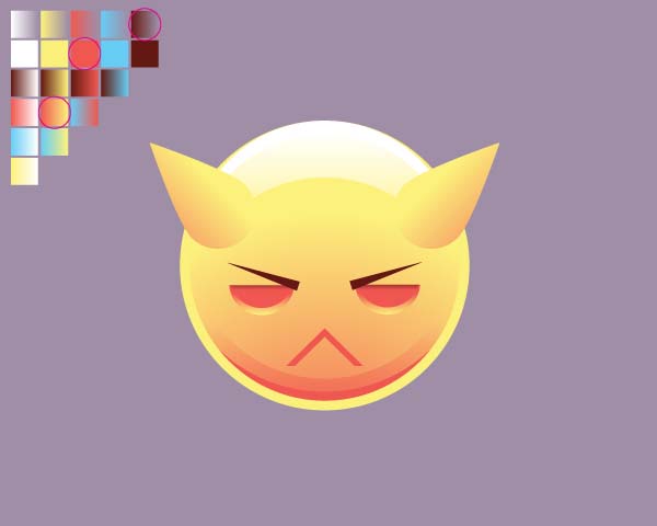 对于眼睛和嘴巴使用红色,眼睛的阴影是棕色渐变,眼睑使用黄色和红色渐变。我们生气的脸几乎已经完成了。