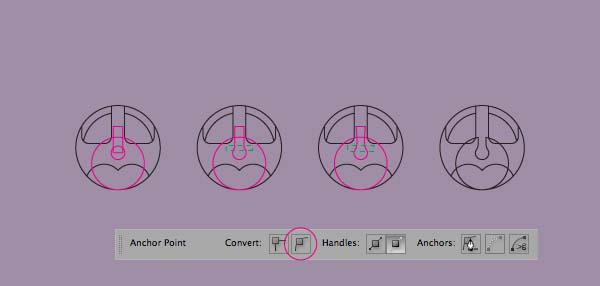 第3步、选择中间的节点并删除锚点。您可以通过单击应用程序栏中的图标并转换为转角来完成此操作,也可以使用转换定位点工具(Shift-C)将其转换为转角。之后,调整节点以使心脏更圆润,最后应用偏移路径。