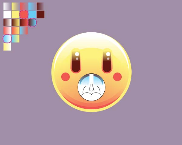嘴巴的颜色与惊讶的脸相同 - 只是舌头上的光线是白色的渐变。我们的快乐表情完成。