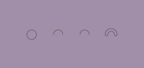 步骤4、为了制作嘴巴,我们从一个圆圈开始,移除一些锚点,然后像图片一样复制并拖动。然后为笔画添加更多点,应用大纲笔画,最后应用Unite将其转换为一个路径。