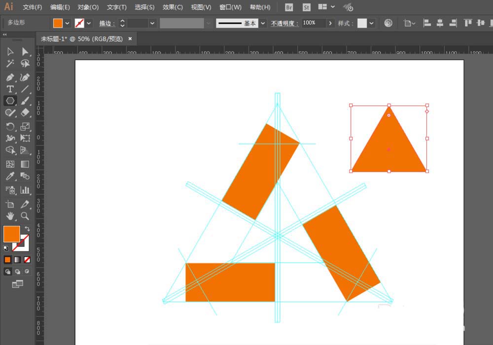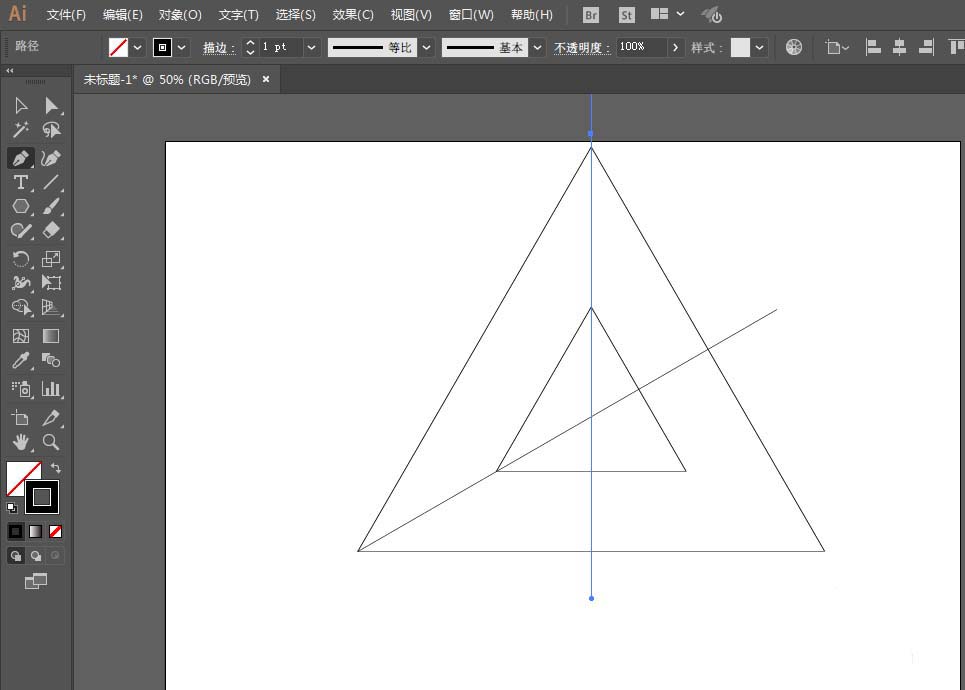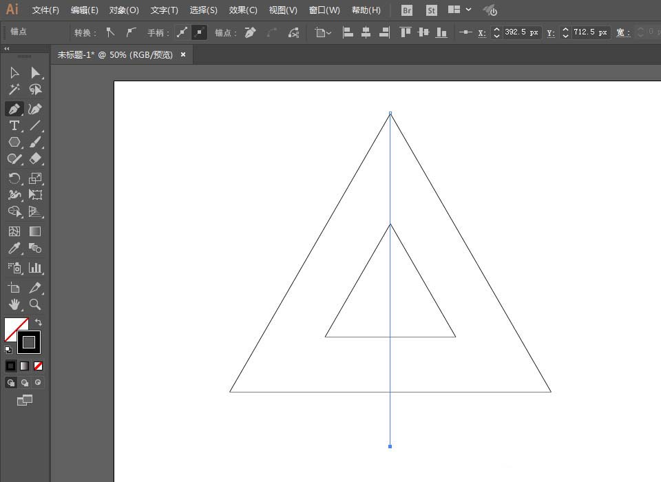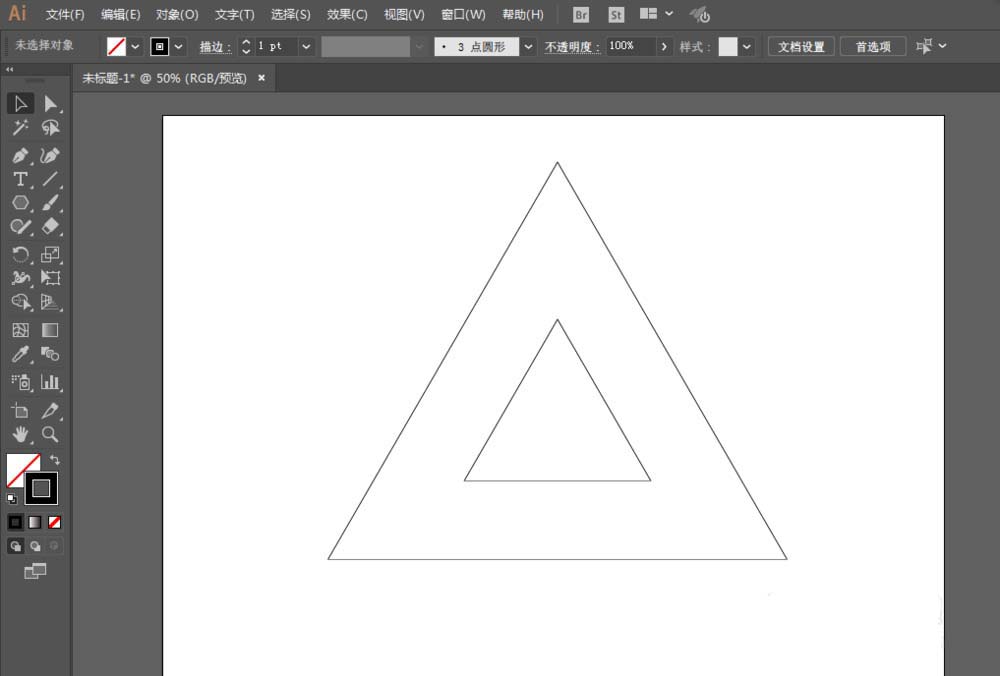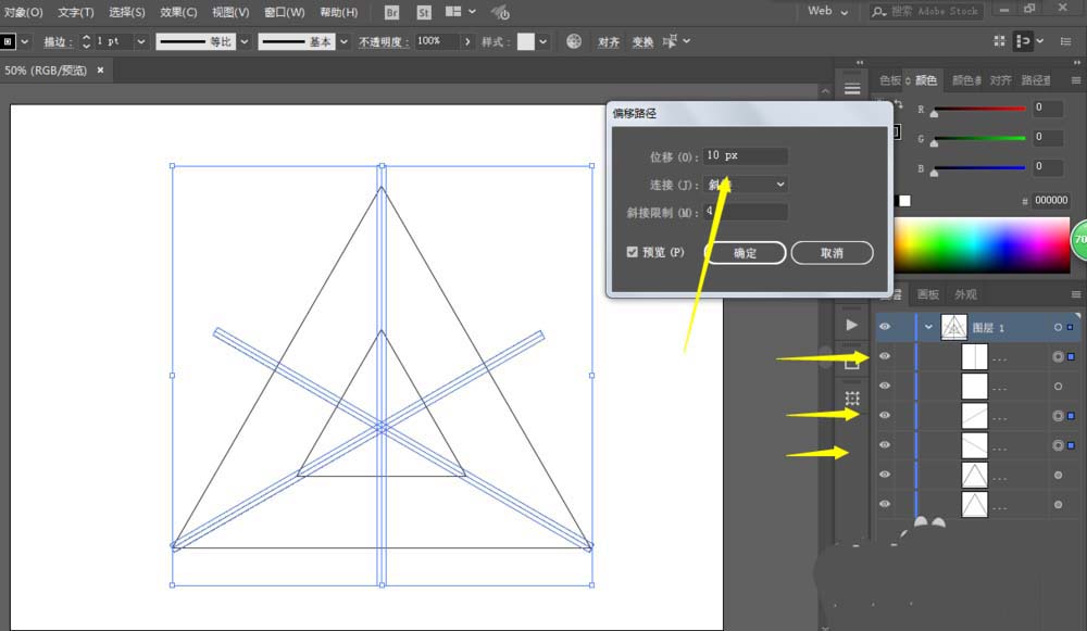 1、用多边形工具绘制三角形,然后进行偏移路径。