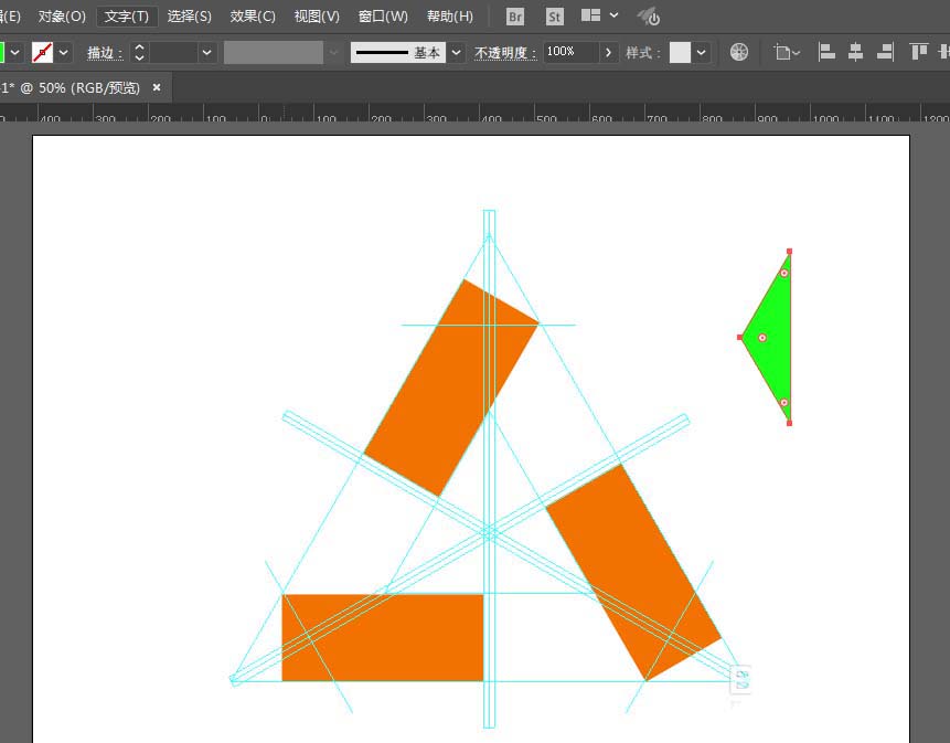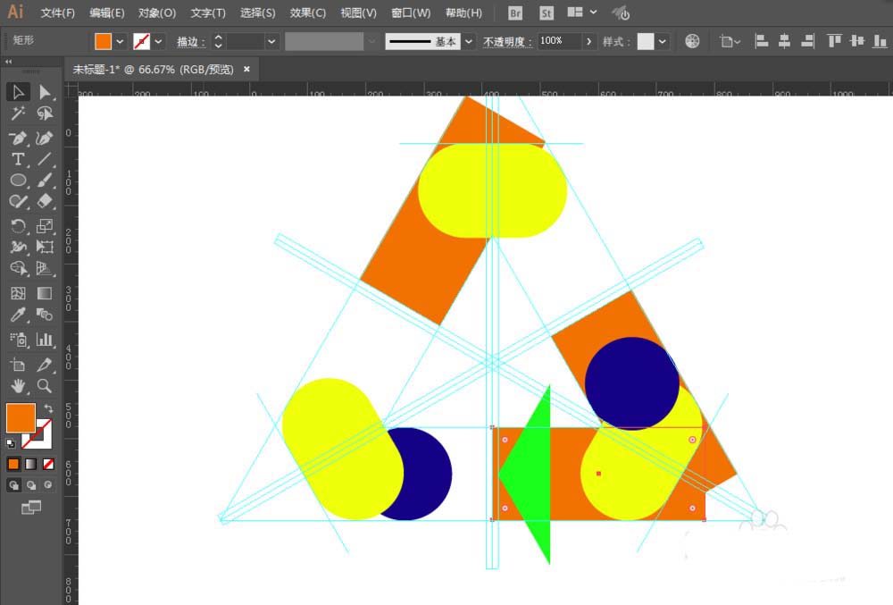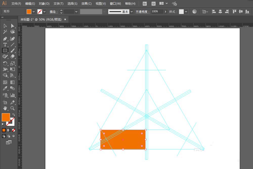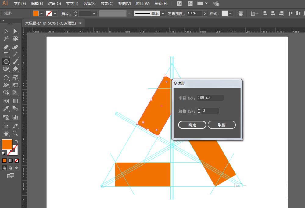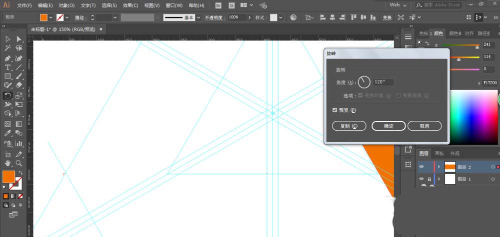 4、用矩形工具绘制长方形,然后旋转120度,再进行一次步骤。
