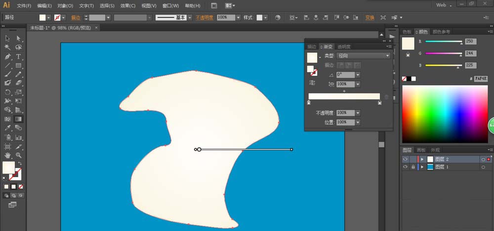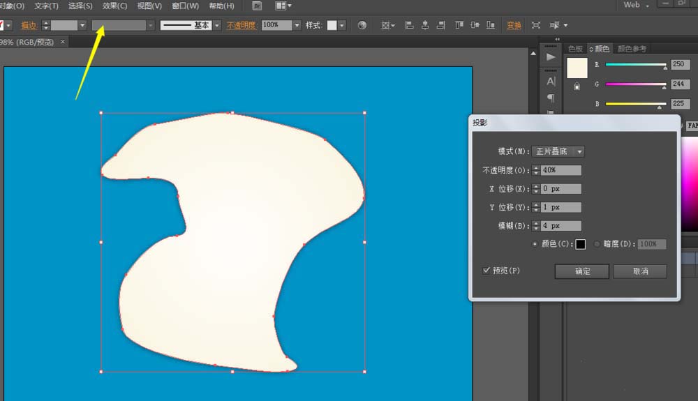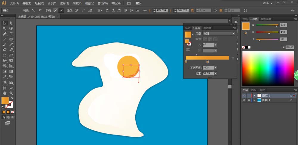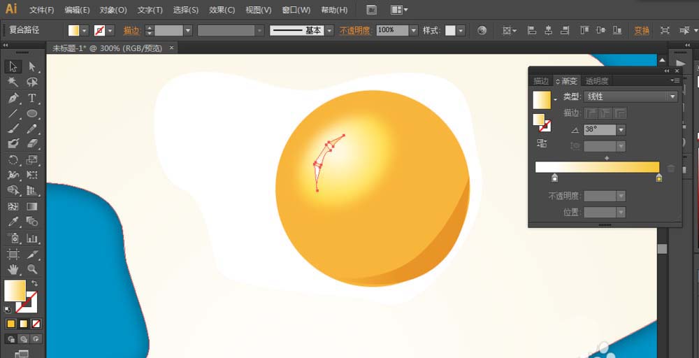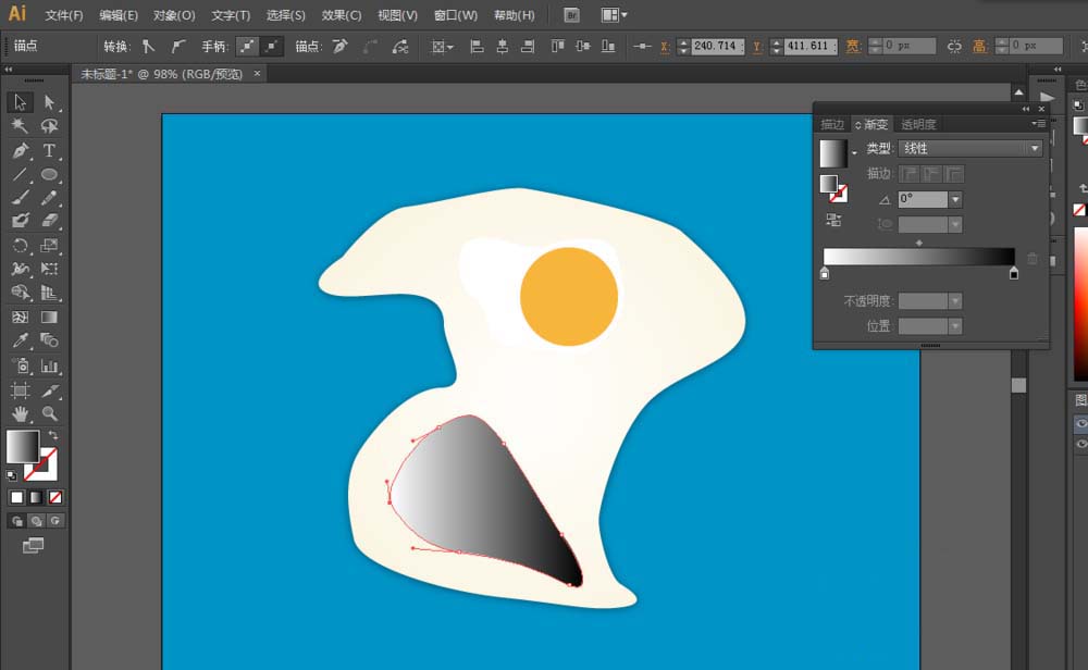 2、用钢笔工具画出煎蛋的外形,可以任意画,然后为其填充渐变颜色,完了以后就增加投影。