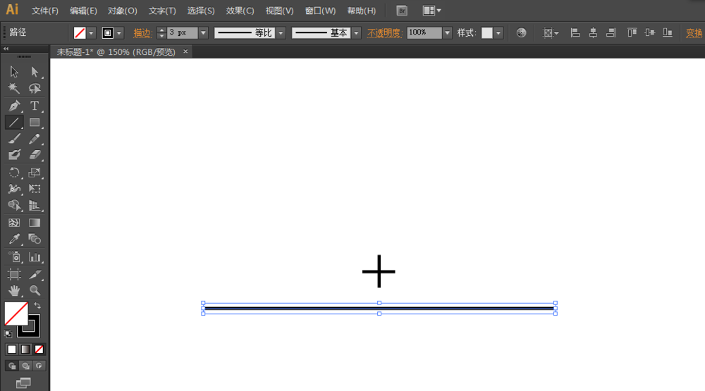 1、新建一个任意大小的文件,用直线工具绘制一个十字。