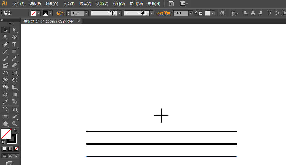 2、再绘制三根长的直线在下方。