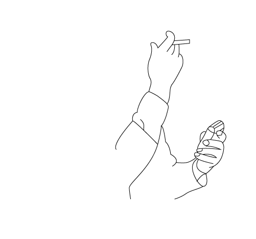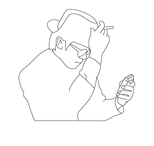 3、选择钢笔工具,然后在工作区里我们绘制出星爷的一只胳膊及手部,然后再在手部画出手里的烟卷,如图所示: