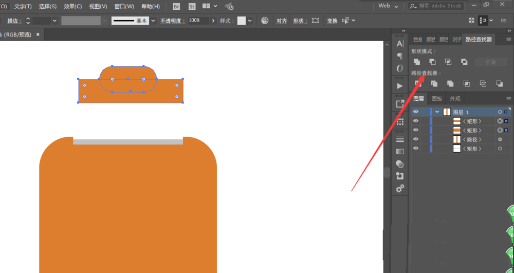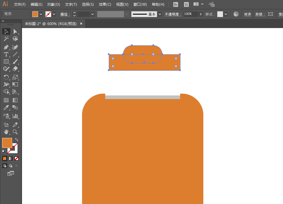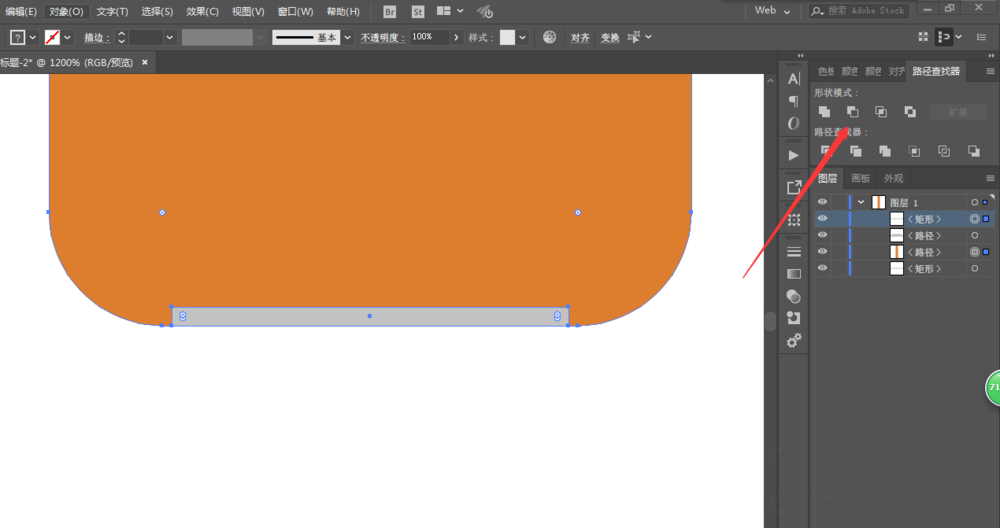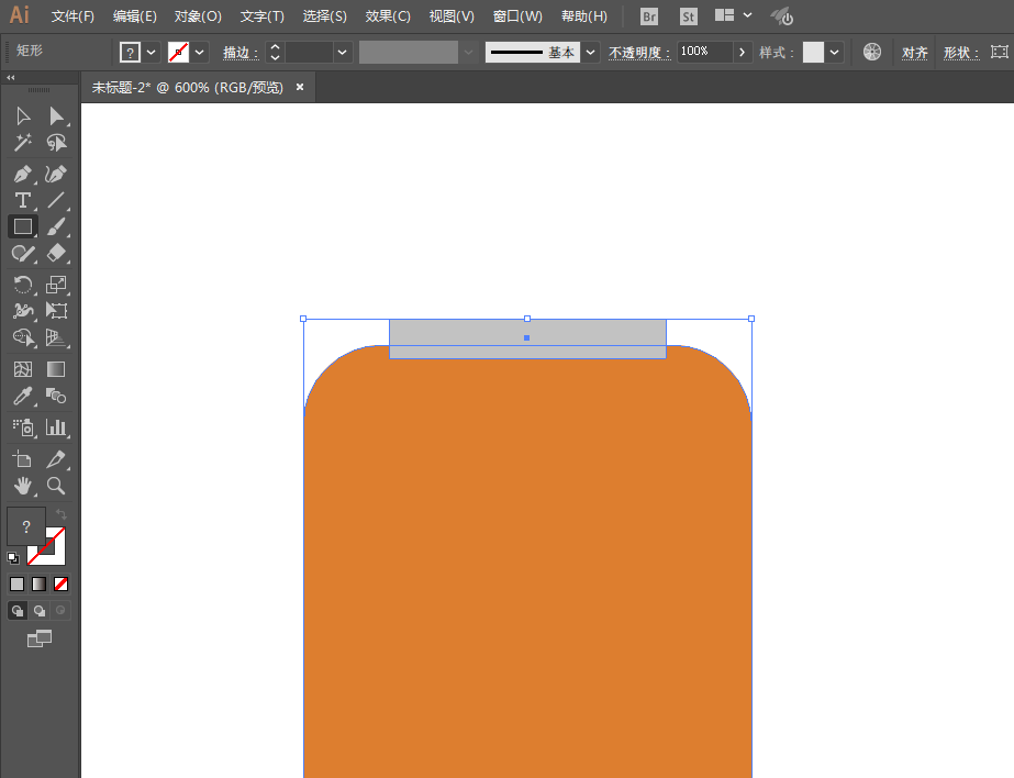 4、绘制长方形在底部,然后去掉顶部,再绘制一个长方形置于底层。
