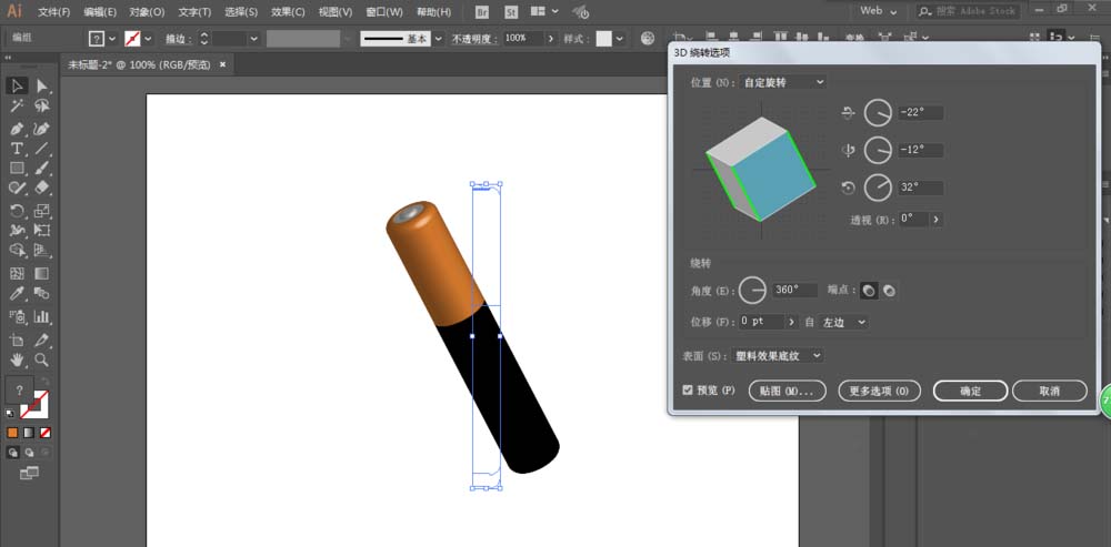 6、进行3D绕转处理。