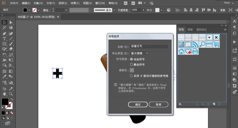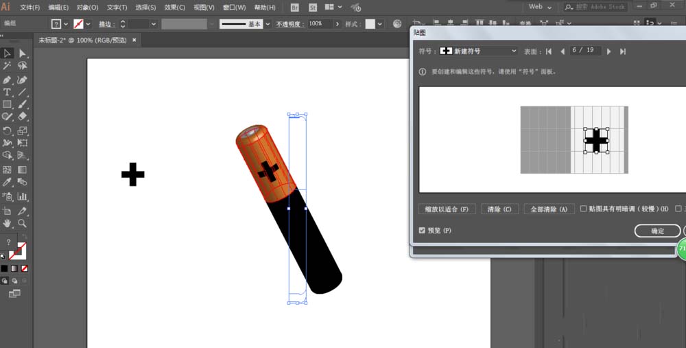 7、用文字工具写出+,扩展对象,新建符号。再把符号添加到3D绕转贴图里面。