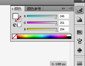 2、RGB就是由R红色,G绿色,B蓝色三个基础色,按它们分别颜色数值的不同,叠加混成不同的颜色,我们可以在AI右边色板的RGB色板里看到,每个颜色有0-255的数值,输入不同的数值,形成了对应的颜色。