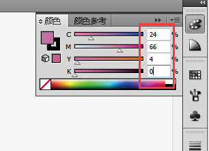4、CMYK模式是由C青色、M洋红色、 Y黄色、K黑色四个基础色,按它们分别颜色数值的不同,叠加混合成不同的颜色,我们可以在AI右边色板的CMYK色板里看到,每个颜色有0-100的数值,输入不同的数值,形成了对应的颜色。