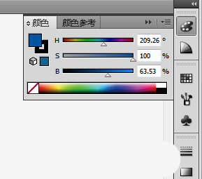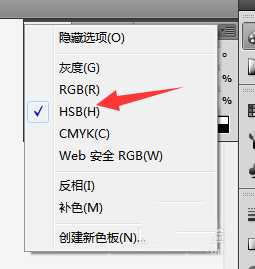 5、AI另外一种颜色模式HSB,如图将色板转换成HSB模式,HSB是以H色相、S饱和度和B亮度的数值的不同来表现不同色彩的,H的数值范围是0-360,S和B都是0-100.