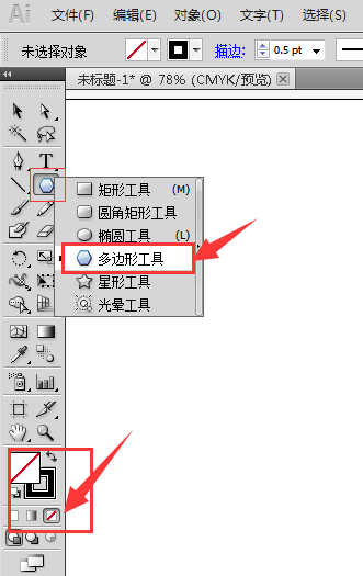 1、打开Illustrator软件,新建一个空白文档,在左边工具栏找到多边形工具,前景色我们设置成无色,为的是可以看清楚后面我们绘制的多个多边形的线条。