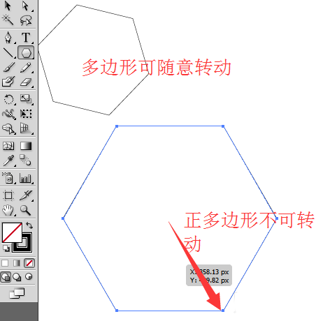 3、按住shift键,可以绘制一个任意大小的正多边形,即不可旋转的。