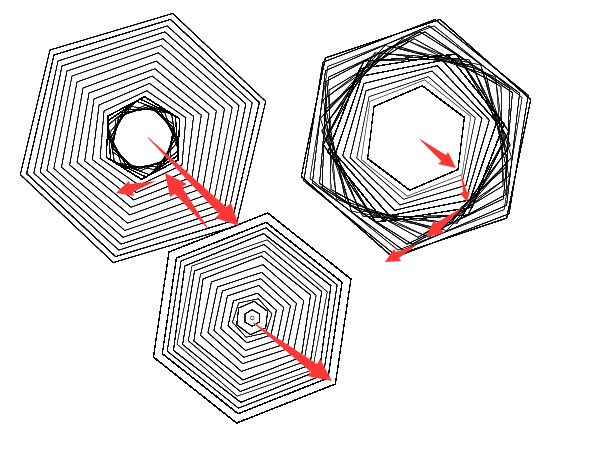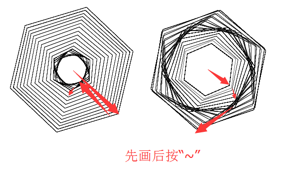 6、按住”~“键不放,加按shift键拖动鼠标可以绘制随意大小的多个叠加的正边形。