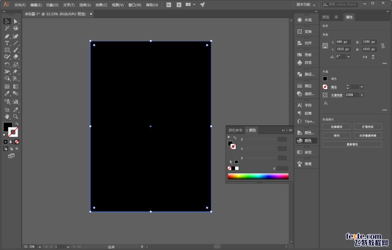 如图所示打开Ai,新建画板并且画一个矩形填充黑色锁定充当背景: