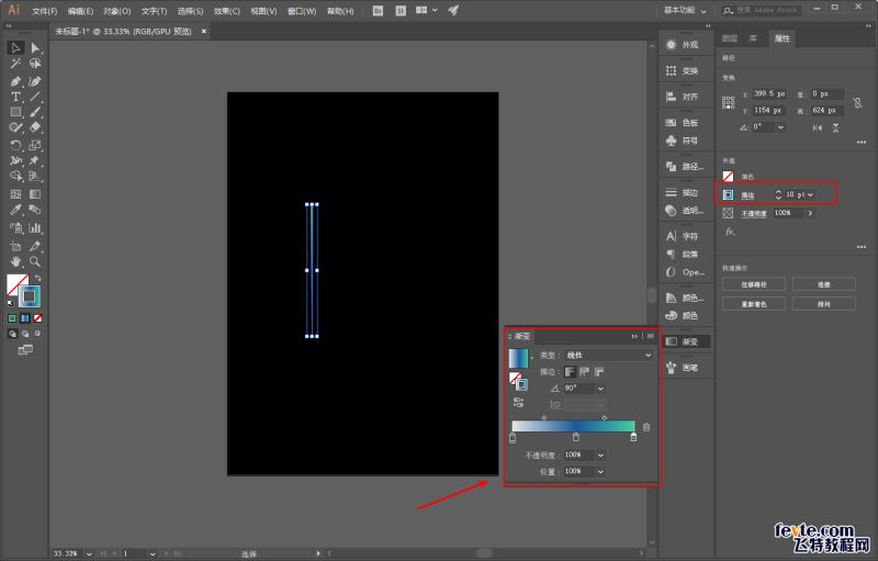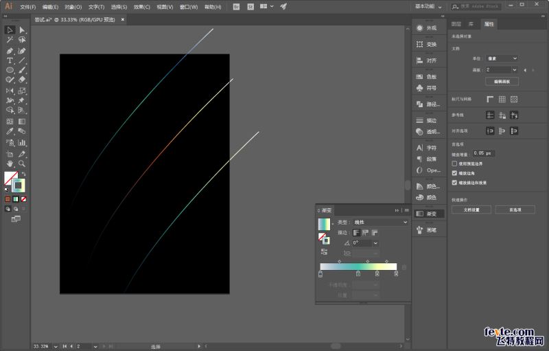如图所示用钢笔工具画一条直线,无填充,描边设置为自己喜欢的渐变色,粗细的话大家看着办就好:
