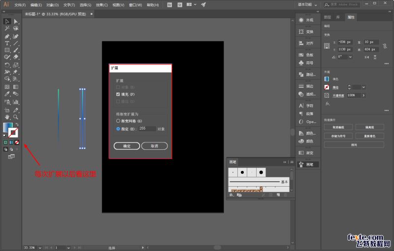 新建散点画笔的图案不能是渐变色,要解决有两种办法。