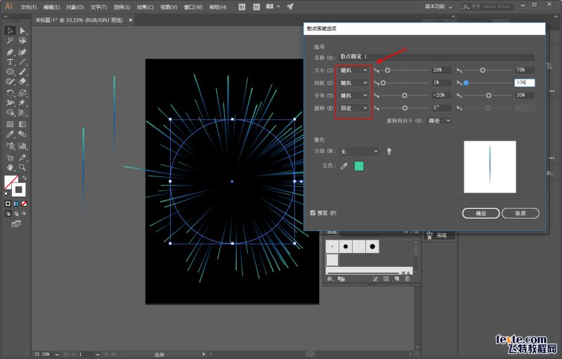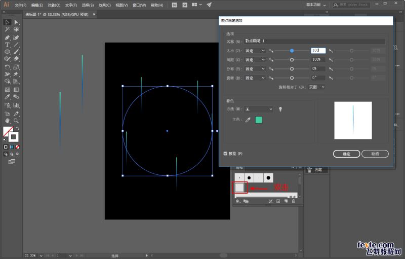 现在的效果明显不是我们想要的,没关系。双击这个散点画笔调出参数设置: