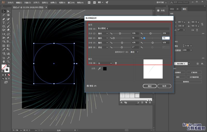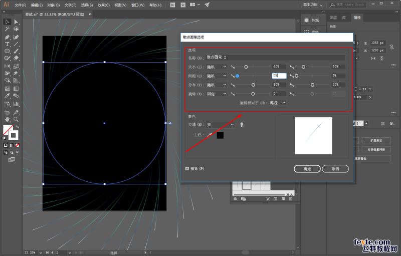 仍然画个圆,载入散点画笔,参数大家就自己设置啦: