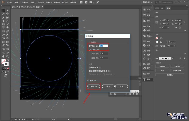 再选中这个圆同比缩放百分之80,复制出来一个: