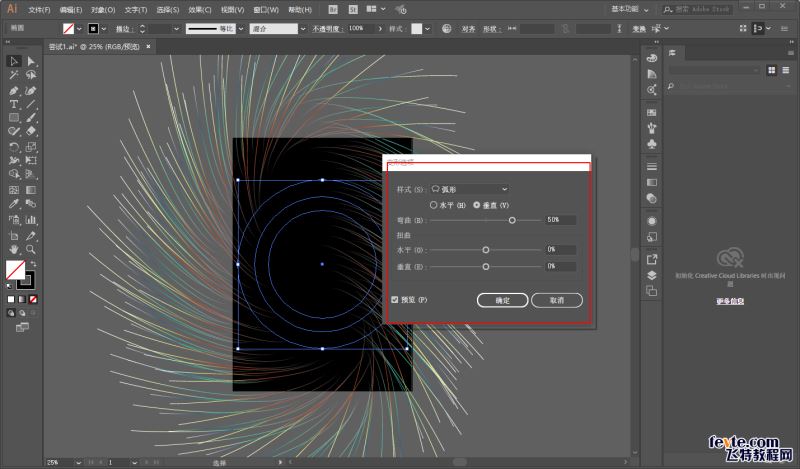执行效果-变形-弧形,垂直扭曲一下: