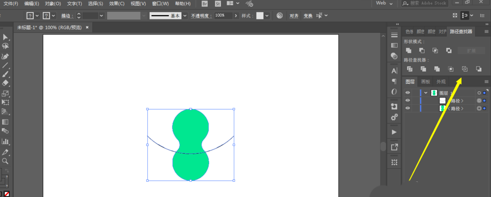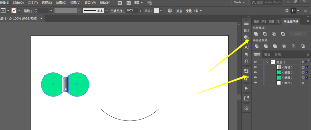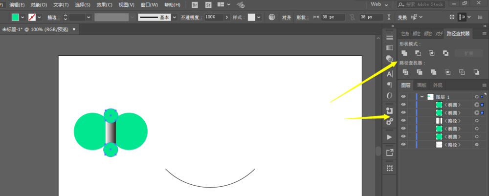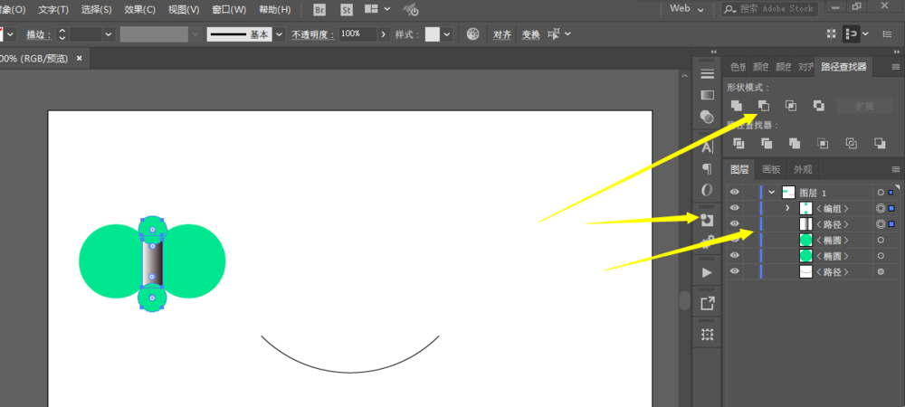 4、选中两个圆形,进行联合,再选中长方形,进行去掉顶部处理。