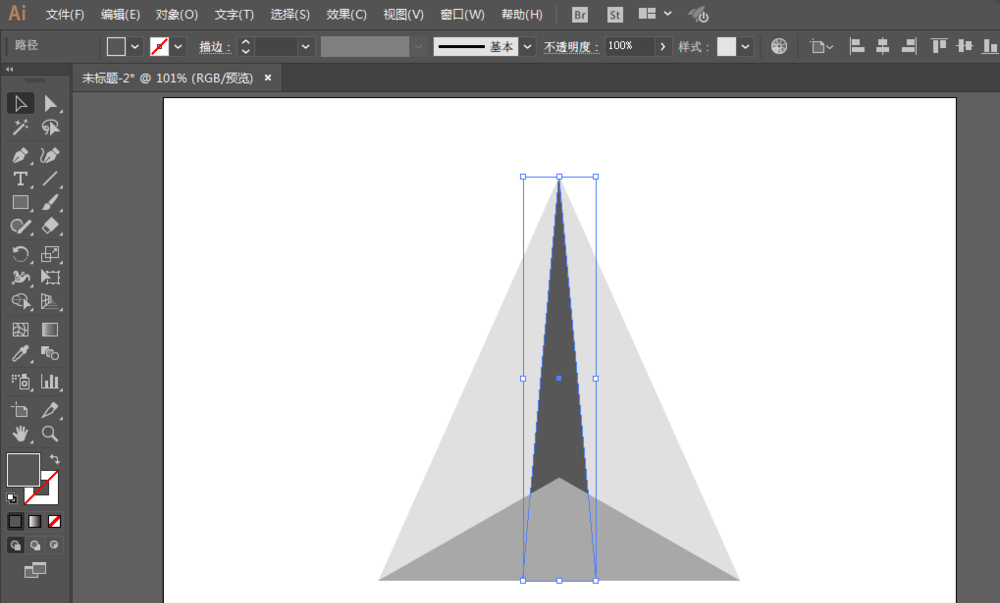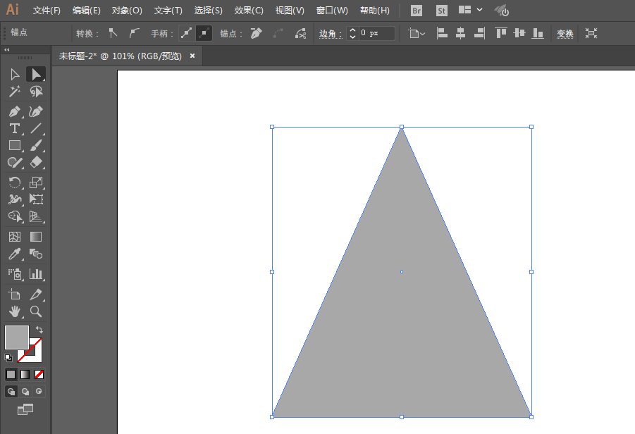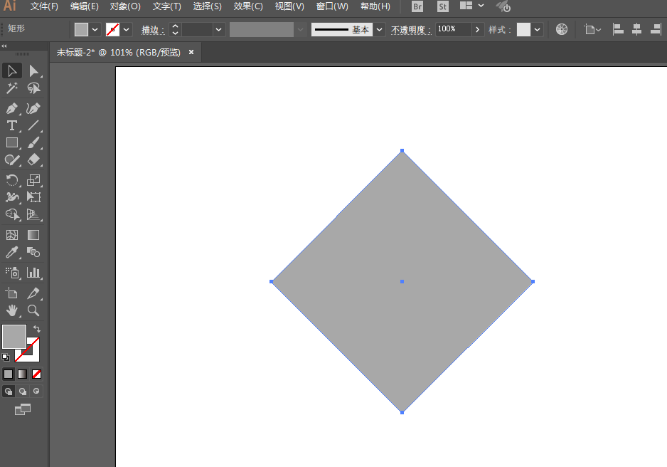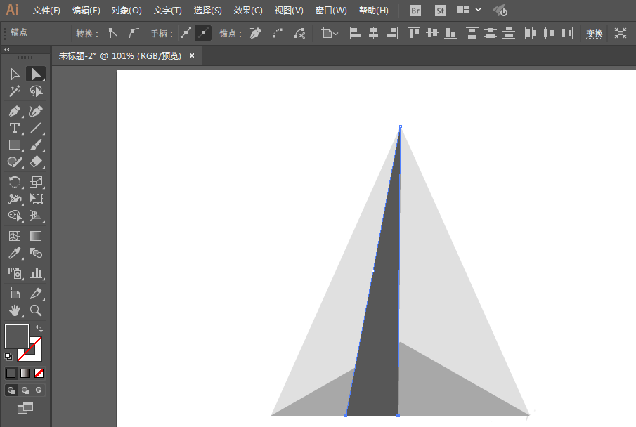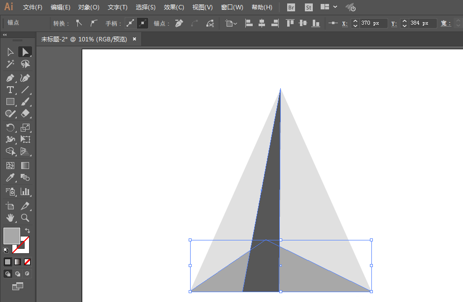 2、旋转一下正方形,然后用直接选择工具去掉下面的锚点,然后在拖动上面的锚点。